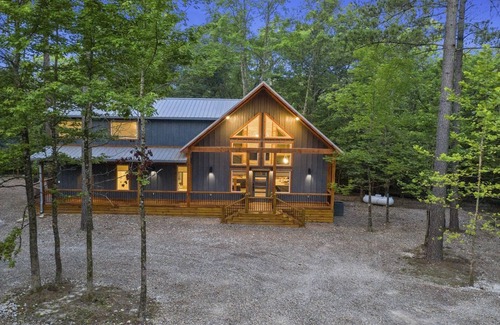 New Luxurious Couples Cabin (Sleeps 6) β Sweet Caroline is elegant and secluded located Eagle Mountain. The large lot borders a small creek with a Creek-Side Play Area. Sweet Carolineβs interior elements include glossy Pine Interior with Blue-Stain Pine walls and elegant White-Washed stained walls. The effects are rustic, classy and elegant. White stacked rocks, and cedar tone beams are through-out the cabin.