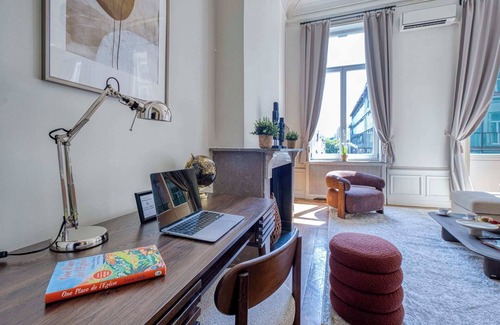 This inviting Family Studio provides a comfortable and stylish setting for exploring Brussels. Its elegant European-style ceiling moulding adds a touch of character, while the space is thoughtfully furnished with a cosy bed, a seating area that transforms into an extra sofa bed, and a well-equipped kitchenette ideal for enjoying your morning coffee. A charming choice for a memorable city stay.