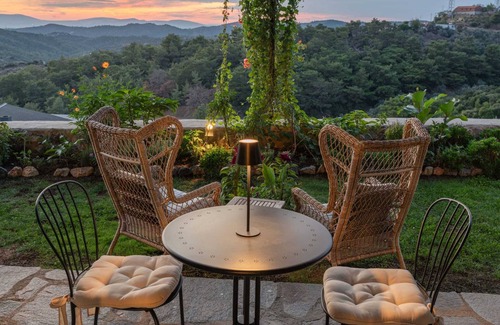 Our house, set in a garden adorned with flowers, is a retreat where you can escape from the crowds and rejuvenate your spirit. You can enjoy sunsets with views of Samos and the sea. Located on the edge of a very old village, our property offers a fenced, secure, and isolated area.