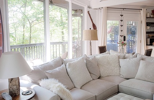 Bee’s Knees at Big Canoe is a 2 bedroom / 2 bath treetopper cottage located in the beautiful Big Canoe gated community. The master suite has a private bath with a jetted-air soaking tub and a queen size bed. You will find yourself cozy and wanting to be lazy as you look out the floor to ceiling windows. The second bedroom has two twin beds and a roll away folding bed is available if needed. The kitchen is stocked with everything you will need to prepare meals, and a gas grill will allow you to prepare the fish you caught in Lake Pettit the same day. Wifi is available with two smart TV’s, and smart locks give you easy access to the cottage. Laundry room is available for use and located downstairs. The Bee’s Knees is the perfect getaway for couples or small families of four or five. Come and experience outdoor living with indoor comforts. Nestled in the trees, you can sit back and watch the sunrise and spend time on the large wrap around deck, or sit in the hammock or swing below. Our outdoor living includes multiple places to escape and soak in the great outdoors surrounded by beautiful trees, wildlife, and seasonal views of Lake Pettit and Lake Disharoon. Do you want to plan a hike and a picnic? We have a picnic basket and blanket (located downstairs) available for use!