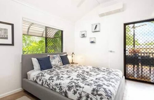 Escape to serenity! Just 5 mins from Kewarra & Trinity Beach, our tranquil retreat offers a fenced yard for your furry friend, ramp access, and a dedicated workspace. Whether you seek solace or crave nearby adventures, we've got you covered. Perfect for singles or couples seeking a peaceful getaway with great proximity to all your convenience needs such as local dining and beach strolls.
