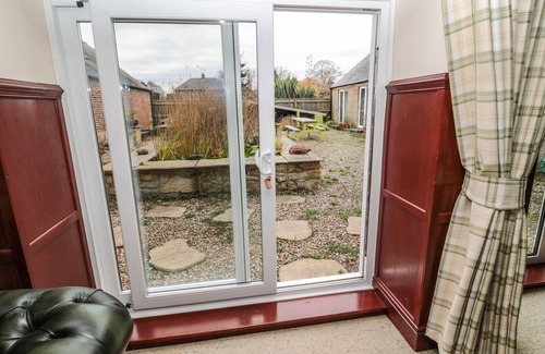 Amenities: Central heating. Electric oven and hob, microwave, kettle, toaster, fridge, freezer, washing machine, tumble dryer, dishwasher. TV with Sky, WiFi. Fuel and power inc. in rent. Bed linen and towels inc. in rent. Cot and Highchair available. Off-road parking for 2 cars. Front patio with bench and shared rear courtyard with furniture and pond. One small dog welcome. Sorry, no smoking. Shop 1.3 miles, pub 3 miles. Note: There is a step leading from the car park to the patio, please take care. Note: There is an unfenced pond in the rear courtyard, please take care and ensure that children and pets are supervised at all times. Note: No stag/hen parties or similar
