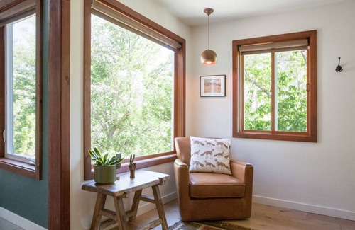Unobstructed and commanding views of the riverscape and rugged mountains beyond from every room. We use local wood on the walls and local river stone on the fireplace. Our home was designed to bring elements of the landscape into the space for a peaceful, natural experience. Your private escape provides comfortable, thoughtfully designed spaces and modern conveniences - curated in a rustic modern style with vintage artwork, favorite books/games, record player and cozy furniture with plenty of room for family and friends.