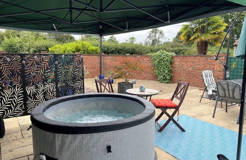 Suitable for couples, friends sharing and families, the property has a double bedroom and shower room on the ground floor and a spacious twin bedroom with adjacent bathroom and separate living space with sofa on the first floor. This configuration provides a good degree of separation between two couples sharing, and for parents from older children who prefer their own space. The large living / dining space opens via patio doors onto the private and secluded south-facing, walled, courtyard style garden equipped with outdoor dining furniture and spa pool in the summer months. The patio is a real sun trap from early morning to late afternoon, encouraging al fresco dining or just taking in the fresh air and quiet country location.