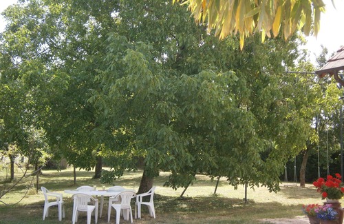 shady spots in the orchard with GARDEN FURNITURE, BARBECUE and LOUNGERS to spend pleasant moments of relaxation. For children: large portico with rings + 2 swings. quiet neighborhood, shops including 2 supermarkets within 2 minutes by car.