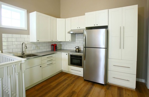 Experience the serene panoramic vista, framed by a collection of architecturally inspired windows and skylights, flooding the space with graceful natural light from dawn to dusk. Whether you're inside or out, The Loft offers peace, warmth, and tranquility throughout the year. It is custom-crafted with a spacious floor plan featuring 18-foot-high cathedral ceilings, a large living area, dedicated work and dining areas, and a well-equipped modern kitchen. After a day of exploring, retreat to the relaxing en-suite bedroom and rejuvenate on our premium mattress, enveloped in comfortable and luxurious bedding.