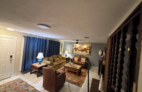 Beautiful two story, 1445 sq. ft. high-end condominium furnished and decorated in one-of-a-kind mexican rustic hacienda style pieces by THE RUSTIC GALLERY in San Antonio, TX. Our condo is fully equipped with a private patio, large community swimming pool, easy access to Mall del Norte, blocks from HEB, Target, IH35 and five minutes from Texas A&M International University (TAMIU). Master Suite has a king size, a futon and large en-suite master bathroom, 2nd large bedroom has 2 queen size beds, walk-in closet and its own full bathroom. Large, spacious living and dining area, half bath with washer and dryer on the first floor. SPECTRUM HIGH SPEED INTERNET plus SILVER TIER CABLE TV, HBO MAX, SHOWTIME, NETFLIX and a smart TV on each bedroom upstairs to help make your stay extra special!