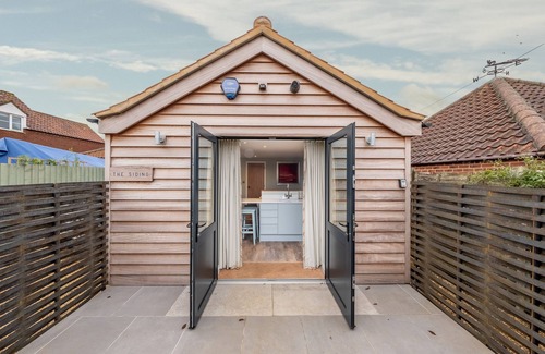 Just a short walk to the beautiful sailing harbour of Brancaster Staithe, The Siding is a lovely open plan studio. This delightful bolthole has been beautifully presented by the owners. Light and bright, it is well located for exploring the coast. Head to the bottom of the private road and you'll discover the coast path where you can walk left to Brancaster beach, or right to two of North Norfolk's best eateries; The Jolly Sailors or The White Horse, the latter of which offers romantic dining accompanied by stunning sunset views from the terrace that overlooks the marsh to Scolt Head Island.