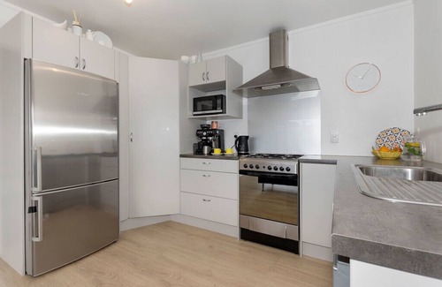 Enjoy afternoons playing on the large grassy front section, or lounging in the outdoor furniture with a book under the sun umbrella on the patio. Gather the family for a classic Kiwi BBQ dinner on the deck under the sunshade.
