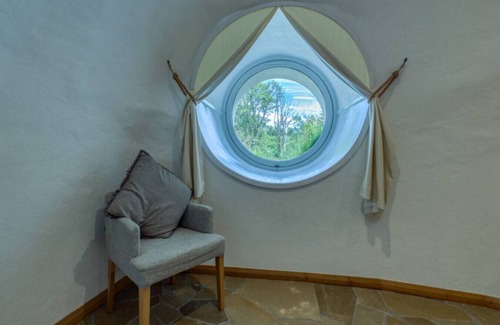 Welcome to The Warren, a truly unique and magical underground hobbit house nestled in a secluded hillside on the north side of Loch Tay. Voted by The Times as the 5th top Airbnb in the UK in 2024, this extraordinary retreat combines enchanting character with luxurious modern comforts. Built with whimsical charm, featuring grass-roofed exteriors, massive circular porthole windows, and curved doors, The Warren offers a serene escape immersed in nature, with stunning views over the river, private gardens, and ancient woodland. Open-Plan Living, Dining & Kitchen: Step into the spacious, open-plan living area, where cosy underfloor heating keeps you warm as you relax amidst charming Hobbit-style surroundings. The comfortable sofas face a flat-screen LED TV, DVD player, and Bluetooth Hi-Fi system, perfect for unwinding after a day exploring the estate. The dining area features a stylish table for four, with scenic views through the circular windows. The modern kitchen boasts a luxurious white Corian worktop and all the latest appliances, including a dishwasher, microwave, and full cooking facilities, making self-catering a true pleasure. 1st Bedroom & En-Suite Bathroom: The first bedroom provides a luxurious haven with a king-sized memory foam bed, dressed in crisp white Egyptian cotton linen, with beautiful White Company throws and cushions for added comfort. Large, flat-screen TV and DVD player are provided for relaxing evenings. The en-suite bathroom features a walk-in shower, freestanding bath, a heated towel rail, and all the plush amenities you need, including luxurious bath sheets, gowns, and high-quality toiletries for a pampering stay. 2nd Bedroom & En-Suite Bathroom: The second bedroom is equally charming, with a king-sized bed also fitted with a memory foam mattress and topped with pristine linen, throws, and cushions. Its en-suite bathroom offers a walk-in shower and beautiful fittings, providing privacy and comfort. Both bedrooms are designed to offer restful nights in a magical setting, providing direct access to the lush private garden. Outdoor Space & Features: Step outside to your private garden with a spacious patio—ideal for outdoor dining, lounging, or simply soaking up the stunning scenery. The gem of The Warren is the bubbling hot tub, positioned perfectly to enjoy views over the flowing stream and surrounding woodland. Access to the stream running alongside the property offers a soothing natural soundscape and a peaceful backdrop for your Highland escape. Additional Amenities & Estate Features: The Warren is equipped with a fully stocked kitchen, a collection of books and DVDs, free Wi-Fi, and environmentally friendly features like an air source heat pump for year-round comfort. Explore the 40-acre estate with ancient woodland walks, an orchard, Loch frontage with fishing rights for trout, natural spring water, and a duck pond. Private parking for two cars is available, with the nearest pub just two miles and Killin village only 7 miles away. Please note, pets and raucous parties are not permitted to maintain the tranquil environment.