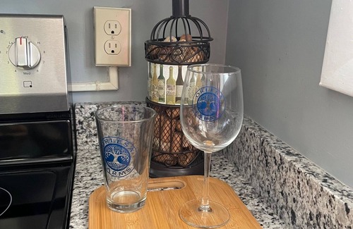 The Cabin: Designed for comfort and relaxation, the cabin features a cozy one-bedroom layout with a queen-sized bed, a 3/4 bathroom with a stand-up shower, and an open-plan kitchen and living area. The kitchen is equipped with everything you need, including a refrigerator, electric stove, microwave, blender, and a drip coffee maker with starter coffee and filters. Enjoy your meals at the high-top island table with seating for four, and unwind in the living area with a comfortable sofa bed and sitting chair.