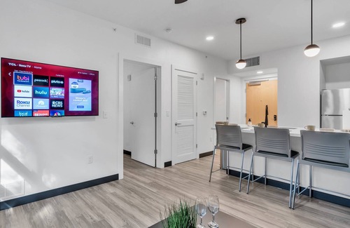 Discover the core of well-being and convenience all within Apartment 208 -- The Well @ SVB on Live Well Lane in scenic Zephyrhills. This stylish & modern feel 1-Queen bedroom, 1-bathroom getaway offers a delightful retreat for your Florida stay. Located on the second floor & facing into a private green reserve, you step into a bright and spacious living space. The fully-equipped kitchen tempts with modern stainless steel appliances, perfect for whipping up delicious meals or enjoying your favorite takeout at the oversized island with seating for 3 that seamlessly connects the kitchen to the living area. After a packed day of work or play, relax in the cozy living area and delight in the 50" Roku Smart TV for your viewing pleasure. You can stay connected with complimentary Wi-Fi.