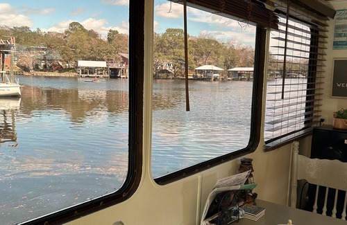 Newly renovated kitchen. Large AC unit. Unit is to stay docked. Can fish off dock or boat. Sit in your own private area enjoying dolphins, birds and jumping fish. Houseboat has 2 TVs with Netflix ,Cable (only in main area )and Roku TV.
