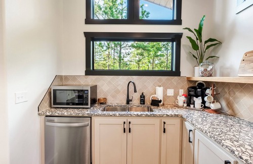 Gorgeous wood cabinets, sparkling state-of-the-art appliances, and beautiful natural light make the culinary paradise a lovely place to prepare delicious meals. Enjoy cooking in style using the modern appliances and cookware provided, then enjoy your meals on the spacious dining table or in the outdoor dining area with gorgeous views.