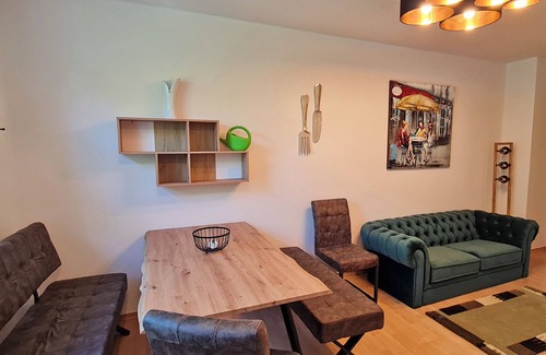 This new and modern apartment is located in the south of Leipzig in a very quiet area overlooking the countryside. This well-equipped apartment with large kitchen, bedroom, bathroom and living room (with fold-out couch) is ideal for both a holiday and a business trip.