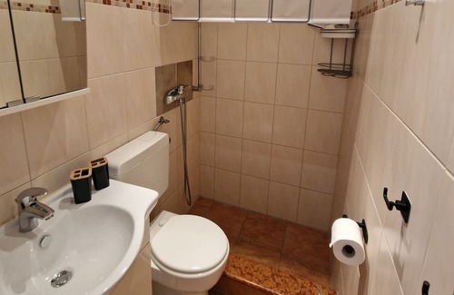 This vacation home offers a private outdoor area with a garden, a covered terrace, a barbecue, a playground, and an outdoor shower. The terrace is furnished for dining in the open air, surrounded by nature and admiring the nearby mountains. Guests of the property enjoy access to a shared outdoor area with a heated pool (open from May to mid-September) and a children's pool.