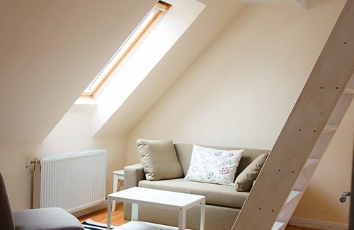 One of the two rooms has a large double bed (1.80x2.00m) and a cozy seating area that invites you to read and relax under the roof. This can be reached via a staircase (see pictures)