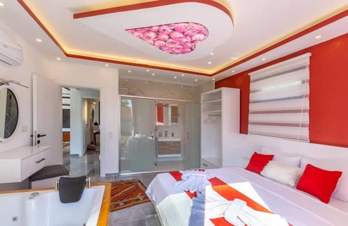 It is located in Sarıbelen location of Kaş Kalkan District. Our villa, which is intertwined with nature, is a villa with a nature view. It is 12 km away from Kalkan center. The pool terrace of our villa is among our conservative villa options, away from foreign eyes. There is table tennis and table football in the garden, which will make your holiday more enjoyable. You can have a pleasant holiday in your private pool. There is a jacuzzi in the suite bedroom of our villa. Our villa is decorated modern and stylish. It is a villa suitable for honeymoon couples and nuclear families. Villa Mavi offers you the opportunity to have a holiday in a villa that is entirely your own, and it is a villa that we recommend to you and that you will be satisfied with. It offers our valued guests a peaceful and unforgettable holiday away from the city noise.
