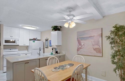 The kitchen is equipped for all of your cooking and serving needs, including a dual drip/pod coffee maker. The downstairs patio and the balcony off of the primary bedroom upstairs overlook a quiet greenspace. The condo is just a short walk to the community pool, grills, or one of 3 beach access points at the Resort.