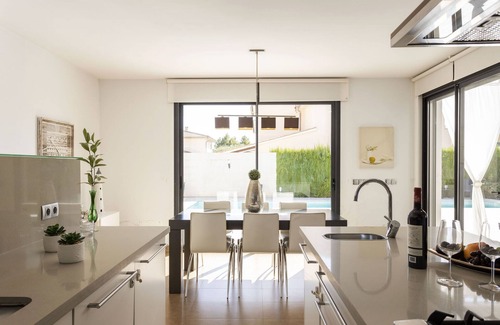 Villa Angela Family Suite is located in Inca in the centre of Mallorca. The property is completely fenced and private. This spacious house has 240 m2, divided into 2 floors, with a high and bright living room with large windows and a large, modern and spacious kitchen. A large sofa with satellite TV to enjoy unique moments with the family. Behind a large sliding door they enter towards the elegant and design kitchen. The kitchen equipment includes everything necessary to cook as if you were at home. A large dining table offers space for everyone. The house for 6-7 people, highly recommended for families with children, 3 double rooms, 1 studio with nest bed, 3 bathrooms, air conditioning throughout the house, free wifi internet, garden with large saltwater pool (11m x 2.5m x5m) and sun loungers, ping pong, furnished terrace with chill out sofa and barbecue. The covered part of the terrace offers a space with table and chairs for the whole family. At the back, a ping pong table awaits the most active. Great villa to spend good holidays with friends or family. !!!!!!! the cost of electricity according to consumption at 0.35€/kw !!!!!!!!