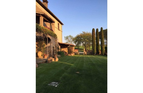 Prestigious and ancient country residence dating back to 1617, on three floors, completely restored in 2006 and used as a comfortable holiday home in the green hills in the center of Roman Tuscia near a small Etruscan necropolis. Located on the small top of a hill (360 slm) it is surrounded by 5,000 m2 of lawn as well as an orchard and an olive grove for a total of 10,000 m2 all fenced. Particularly interesting position, as well as for the excellent tranquility, for the geographical location that allows you to easily visit both Umbria and Lazio. Swimming pool (6x12 - max depth 2.10) equipped with deck chairs, tables and umbrellas and children's pool (4x4 - depth 1.20). Laundry room (washing machine). An Etruscan tomb can be visited near the pools. On request and to be paid on the spot, further 5 additional movable sofa beds are available (Euro 100 bed / week). Parking near the villa. Access to the property through an automatic gate. On request possibility to organize lunches or dinners, cooking courses and to participate in guided excursions (archaeological, lake, thermal, cultural, food and wine itinerary); possibility to buy the farm's products (wine, oil). Upon request and payment it is possible to take advantage of on-site wellness treatments.