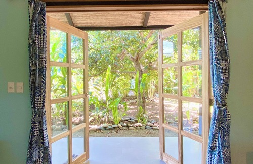 New to VRBO! Private, quiet, and peaceful, Villa del Mito gives perfect work/life balance. Enclosed within a wall and secure gate, the lush garden and fruit trees attract birds, sloths, and other wildlife. Enjoy time on the spacious patio and by the pool with friends and family, make a festive meal, and walk to the black sands of Playa Negra. Or, relax in your bedroom with separate entrance, bath and AC. The villa has satellite wifi, a dedicated office space, and ample desks in all bedrooms.