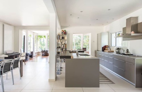 This renovated provencal villa is located in a quiet residential area of Saint-Clément-de-rivière, only 20 minutes away from Montpellier’s city center. It offers ample living space, surrounded by a vast expanse of nature and a large pool.This villa can accommodate up to 8 people. On the ground floor, there is an80 sq m living room with dining area overlooking a large terrace and the garden through bay windows. The modern kitchen is made very practical with it’s central table and open space design. On one side of the main living space is one master bedroom with en-suite bathroom, and a dressing room. On the other side is a double bedroom with en-suite shower room and toilet, with straight access to private terrace.