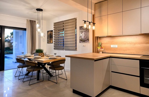 Only 500m from the fantastic beach, newly built modern villa - Villa Nostro Porto 5* is a true enjoyment for those who want to experience a vacation in complete relaxation and peace. This breath taking property can offer hospitality up to 8 guests with an open living space and 3 bright bedrooms all with en-suit bathrooms and 2 more guests on the sofa in the living room.