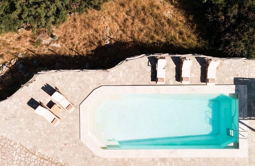 The outdoor area is going to leave guests thrilled with breathtaking sea views and the surrounding mountains. The private swimming pool offers moments of tranquility and relaxation, offering the ideal setup for family & friendly gatherings
