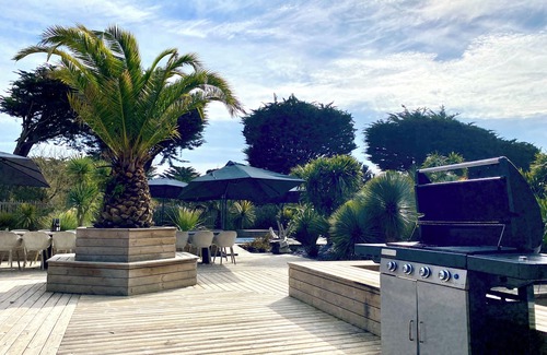 Outside, you will find a large private terrace with beautiful garden furniture, barbecue and gas plancha, hammocks, as well as a swim spa (optional). An aquabike is at your disposal.