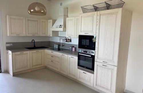 The interior consists of a kitchen equipped with dishes, dishwasher, oven, refrigerator, Nespresso with pods provided; machine to prepare excellent cappuccinos. Available to guests: oil, vinegar, spices; salt; white and brown sugar.
