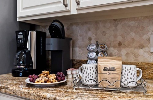 - Fully stocked kitchen with stainless steel appliances, granite countertops, and a breakfast nook