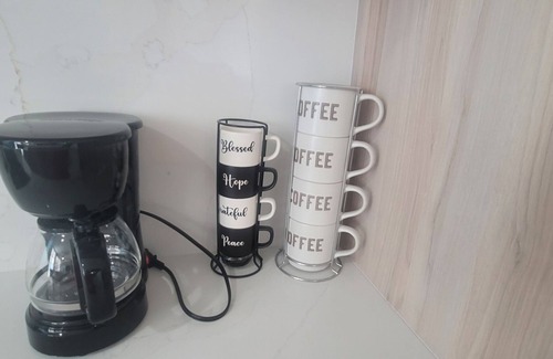Our space also features 2 fully renovated bathrooms. On the second floor is a full bathroom with shower. The first floor features a half bath. The living room is cozy and the kitchen is stunning and fully equipped with stove, refrigerator, microwave, coffee maker and cooking wear.