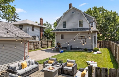 Relax in the comfortable seating area around the gas fire-pit in the private fenced backyard as you enjoy a glass of wine listening to the ND church bells or band in the background. The backyard also a gas grill and plenty of green space to toss a ball or play yard games.