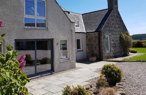 The Farmhouse sits in a large sunny garden accessed by a private driveway with open views of the Aberdeenshire countryside. Set in a quiet rural location yet close to amenities. Aberdeen 10 miles, Royal Deeside 8 miles. Several championship golf courses within 30 minutes.
