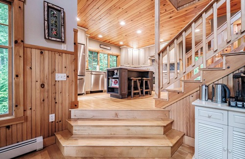 The South Pond Lake House in Greenwood, Maine, is a stunning, private retreat. Its spacious, well-appointed interiors, large water-facing patio, and proximity to hiking trails, Mt. Abram, Bethel village, and Sunday River make it the perfect getaway for creating unforgettable memories year-round.