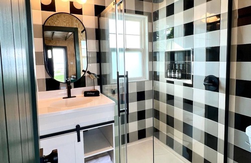 Completely remodeled from top to bottom, Hygge House offers ample accommodations. You’ll love the living room where you have clear views of both lakes from the front of the house to the back. The living room also features a smart tv, strong wi-fi, relaxing sofas and an electric fireplace. The dining table has two benches tucked underneath and can be expanded with included leaf to comfortably seat everyone. The stylish kitchen features a state-of-the-art dishwasher, microwave, Ninja Foodi (with air fryer, toaster oven, broiler, convection oven and dehydrator functions), refrigerator with ice maker, Keurig Coffee Maker (with provided K-cups and condiments), cooking basics, flatware and dishes, and much more! The bathroom is straight out of a magazine with a large corner shower, and stocks shampoo, conditioner, body wash, towels, and hairdryer. Bedroom No. 1 has a queen-sized bed with memory foam hybrid mattress, closet system and full-sized washer and dryer (with provided detergent and dryer sheets). Bedroom No. 2 has a twin XL bed over queen bunk bed (both are memory foam hybrids mattresses), closet system, and easily accessible outlets with USB charging ports for each bed. Each bedroom has its own mini-split heating and air conditioning unit with remote for personalized comfort levels.