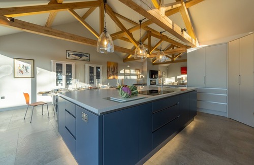 Your group will have plenty of space to relax, particularly in the main living areas which allow plenty of opportunity for social dining and gathering. Made for entertaining, the open-plan kitchen/dining/sitting room is the heart of the house and perfect for honing your culinary skills. You can buy fresh fish and seafood from the harbour and local produce on your doorstep. The kitchen has been fitted with all of the mod cons including a boiling water Quooker tap. Hunker down after supper in front of the wood burning stove on winter evenings or, on longer summer days, open the huge bi-fold doors and step out onto the large sun-soaked terrace with barbecue. There is also a cosy snug ideal for reading, watching television, or playing board games.