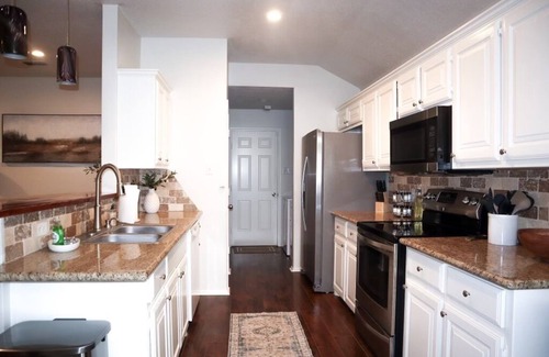 Welcome to your ideal Lubbock retreat! This beautifully furnished 3-bedroom, 2-bathroom home is located in a quiet, family-friendly neighborhood on the west side of the city. Designed exclusively as a vacation rental, it offers all the comforts of home with upscale touches to ensure a relaxing and hassle-free stay. Whether you’re visiting for a Texas Tech game, a medical appointment, a business trip, or just a getaway, this home is the perfect choice.