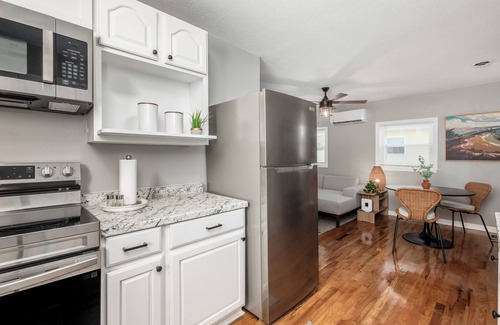 With an open and comfortable living space, guests can settle in for a great stay! A roomy sectional sofa and smart high-def television for entertaining/streaming your own subscriptions. Dining area with seating for four. Wifi perfect for working from home. Explore the region on the two included bikes, enjoy a morning cup in the front sunroom, cook a fabulous meal in the well-stocked kitchen, and rest knowing that you've got a comfortable bed for a great night's sleep!