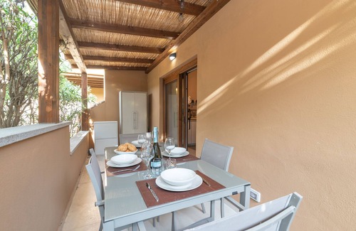 Quietly situated in a small resort, on the ground floor of a modern apartment building the property is surrounded by nature. A shady terrace serves as an extension to the open plan living space where guests can enjoy alfresco dining or simply relax with a drink after a busy day.
