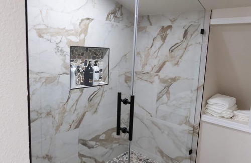 Get cozy and settle into this rustic space with the cedar-lined walls and ceilings. You're nestled among the trees with a gorgeous screened-in porch overlooking the vineyard. This studio-style apartment has indoor & outdoor dining, a kitchenette, queen bed and beautifully finished bathroom. Your romantic retreat awaits you!