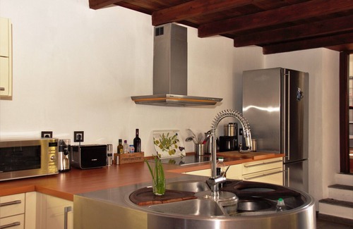My in this village located, lovingly renovated traditional and superbly appointed room house on three levels, with around 80 square meters max. 4 people. In the bedroom, the double bed with a continuous, back-friendly extra thick mattress is equipped. Two other sleeping arrangements offers the comfortable sofa bed in the spacious living room. The large Smart TVs with satellite TV and free Wi-Fi provide relaxing entertainment and information from home.