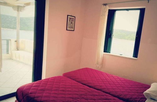 A Mediterranean architecture house situated on the coastline of the Evian gulf on his own "private" beach. The ground level is consisted of the living room with a fireplace, a bedroom, kitchen and a bathroom. At the first floor we find the second bedroom with a bathroom. A house comfortable for couples or small families and pets, with all the necessary amenities for a pleasant stay by the sea.